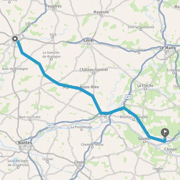 Prendre à droite et rejoindre A11 E60. Continuer sur 23 kilomètres