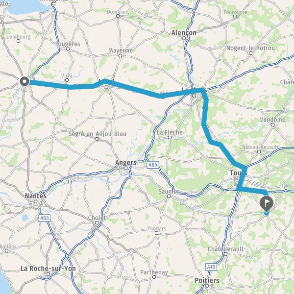 Prendre à droite et rejoindre A85 E604. Continuer sur 22 kilomètres