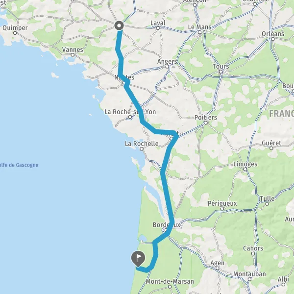 Prendre à droite et rejoindre A83. Continuer sur 150 kilomètres