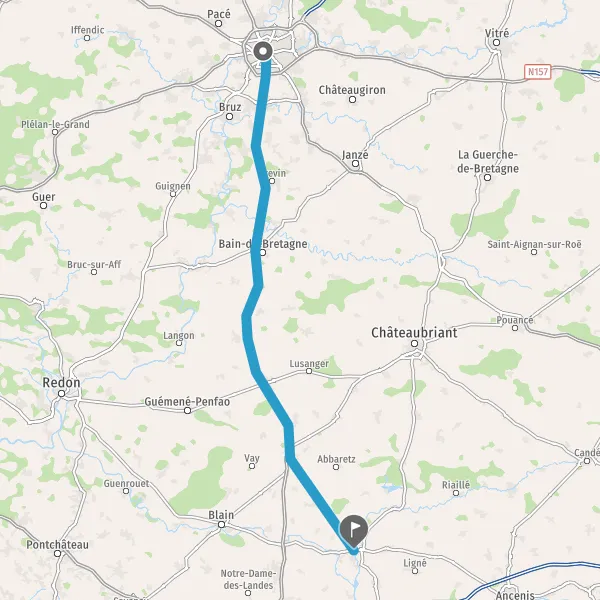 Tourner légèrement à gauche sur D121 (Route de Rennes) et continuer sur 1 kilomètre