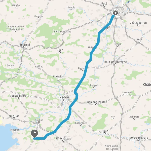 Tourner à droite sur D46 (Rue de Redon) et continuer sur 5,9 kilomètres
