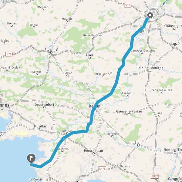 Au rond-point, prendre la 2ème sortie sur D114 (Route de Redon) et continuer sur 2,1 kilomètres