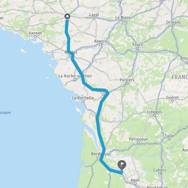 Prendre à droite et rejoindre A83. Continuer sur 150 kilomètres