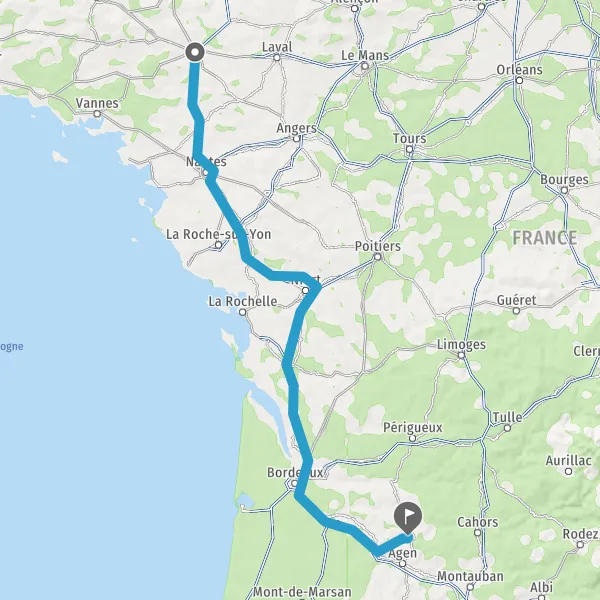 Prendre à droite et rejoindre A83. Continuer sur 150 kilomètres