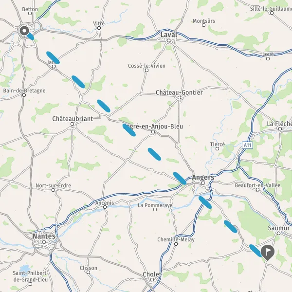 Prendre à droite et rejoindre A11 E60. Continuer sur 9,5 kilomètres