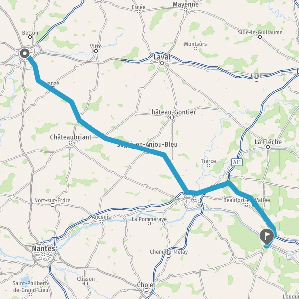 Prendre à droite et rejoindre A11 E60. Continuer sur 23 kilomètres