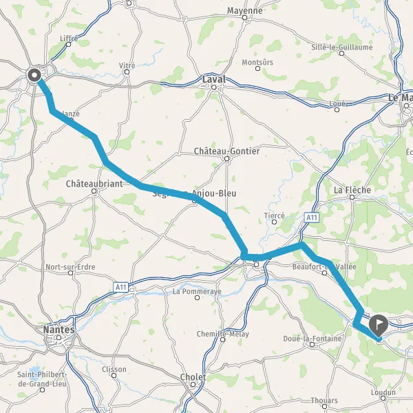 Prendre à droite et rejoindre A11 E60. Continuer sur 23 kilomètres