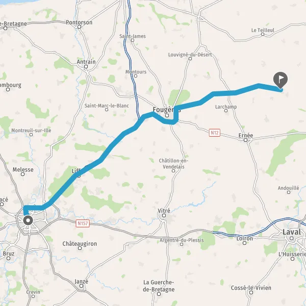 Tourner légèrement à droite sur D33 (Route de Fougères) et continuer sur 5,5 kilomètres