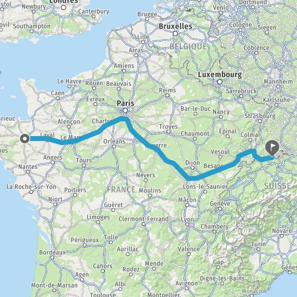 Prendre à droite et rejoindre A36. Continuer sur 165 kilomètres