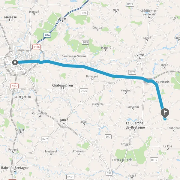 Au rond-point, prendre la 1ère sortie sur D32 (Route de Domloup) et continuer sur 300 mètres