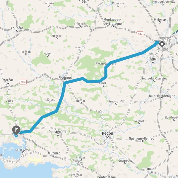 Continuer N24 (Route de Lorient) sur 60 kilomètres
