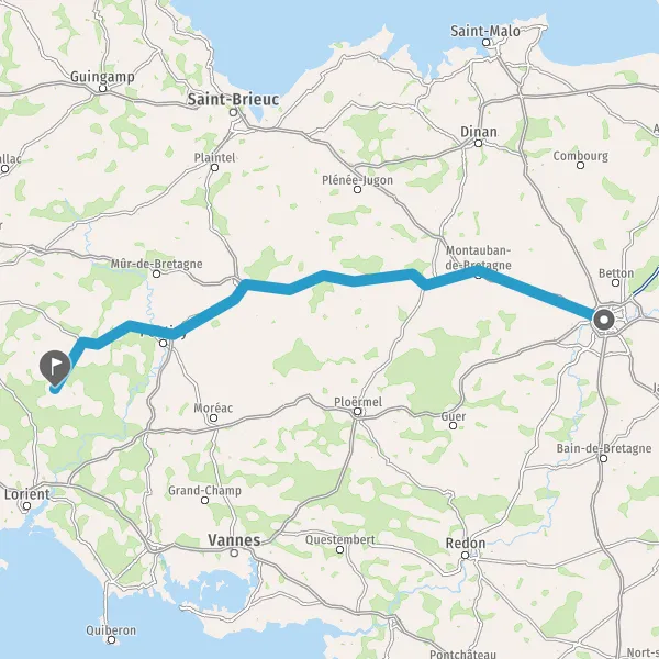 Au rond-point, prendre la 2ème sortie sur D782 (Route de Lorient) et continuer sur 3,9 kilomètres