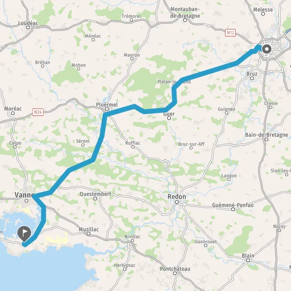 Continuer N24 (Route de Lorient) sur 60 kilomètres