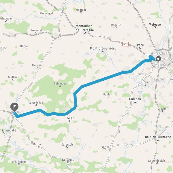Au rond-point, prendre la 2ème sortie sur N12 (Route de Saint-Brieuc) et continuer sur 600 mètres