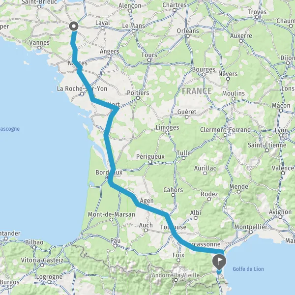 Prendre à droite et rejoindre A83. Continuer sur 150 kilomètres