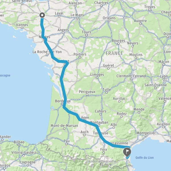 Prendre à droite et rejoindre A83. Continuer sur 150 kilomètres