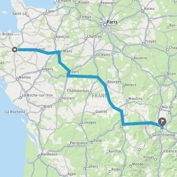 Prendre à droite et rejoindre A85 E604. Continuer sur 106 kilomètres