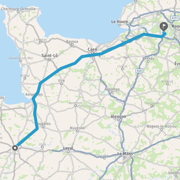Prendre à droite et rejoindre A84 E3. Continuer sur 120 kilomètres