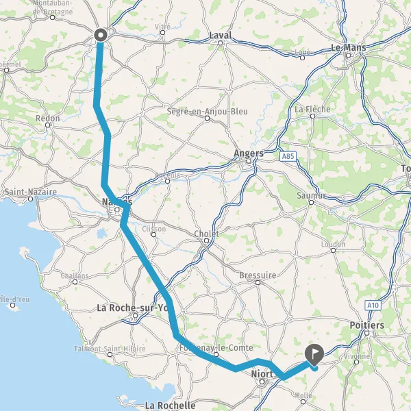 Prendre à droite et rejoindre A83. Continuer sur 150 kilomètres