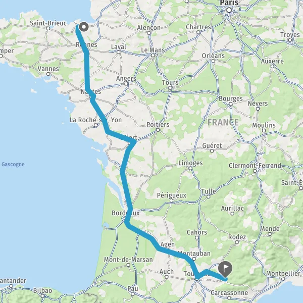 Prendre à droite et rejoindre A83. Continuer sur 150 kilomètres