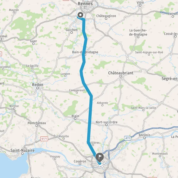 Au rond-point, prendre la 2ème sortie sur Route de Rennes et continuer sur 180 mètres