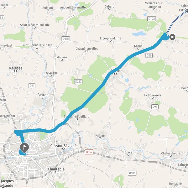 | Distance en voiture | 29,8 km à 33,4 km |