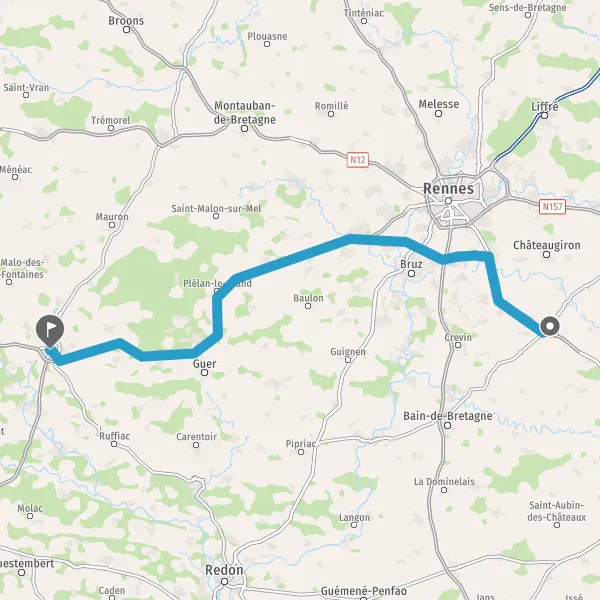 Au rond-point, prendre la 2ème sortie sur D777 (Route de Bain) et continuer sur 160 mètres