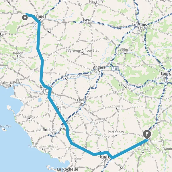 Prendre à droite et rejoindre A83. Continuer sur 150 kilomètres