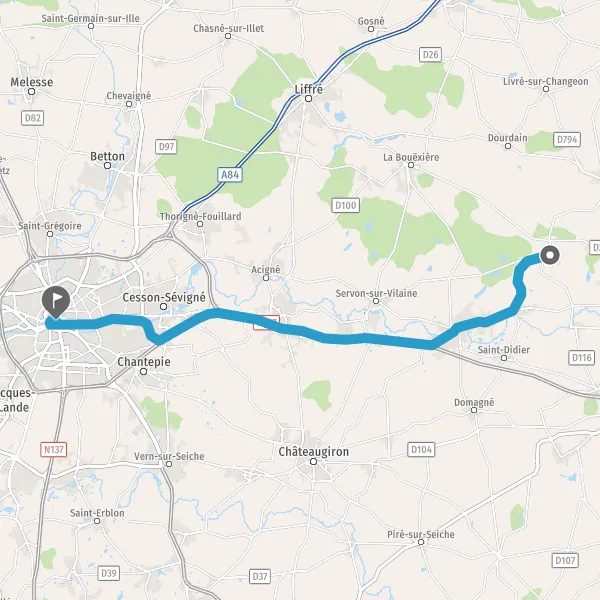 Tourner légèrement à droite sur D857 (Rue de Vitré) et continuer sur 500 mètres