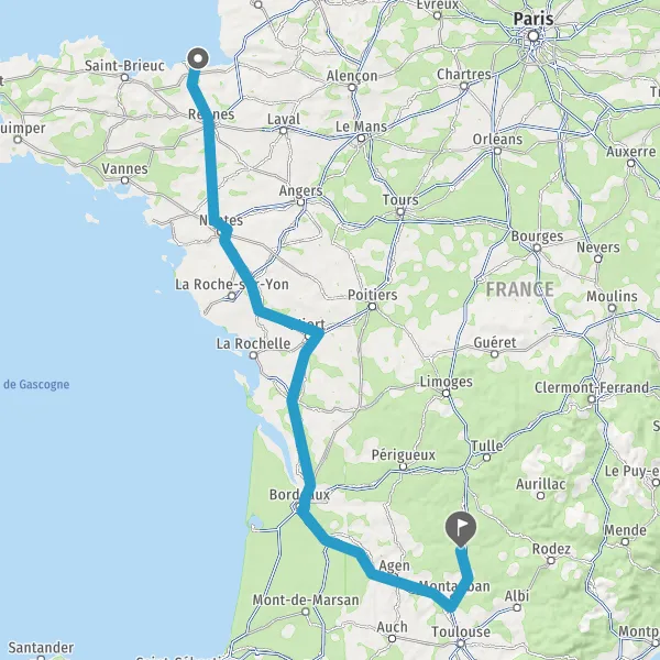 Prendre à droite et rejoindre A83. Continuer sur 150 kilomètres