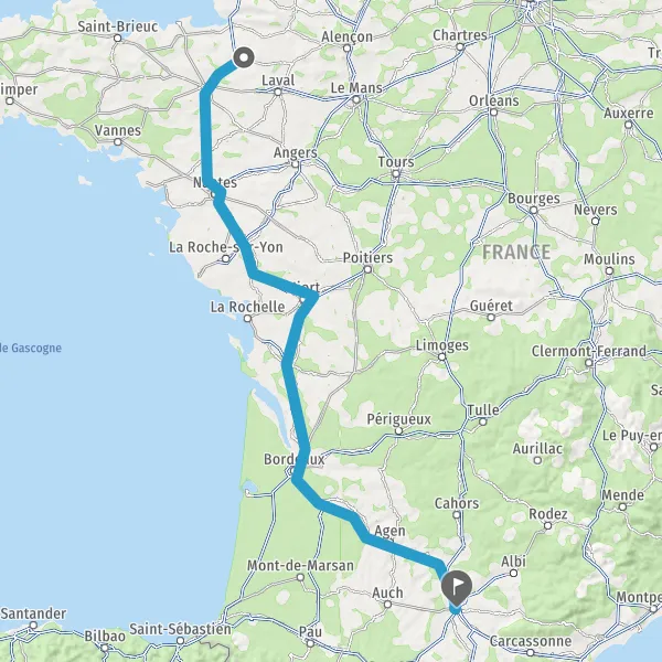 Prendre à droite et rejoindre A83. Continuer sur 150 kilomètres