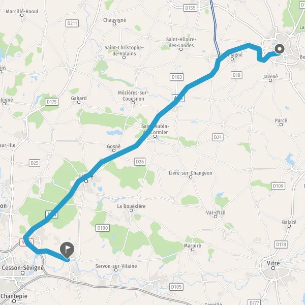 | Distance en voiture | 39,7 km à 47,5 km |