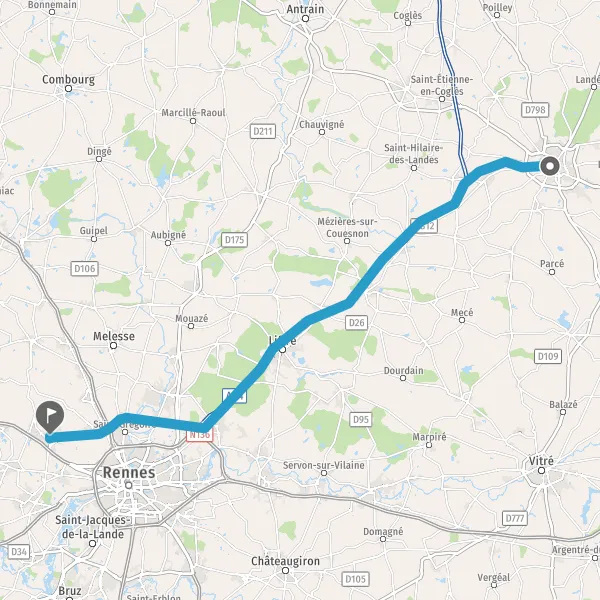 Au rond-point, prendre la 2ème sortie sur N12 (Route de Rennes) et continuer sur 280 mètres