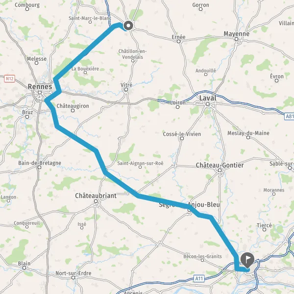 Prendre à droite et rejoindre D173 (Rue de Vern). Continuer sur 600 mètres