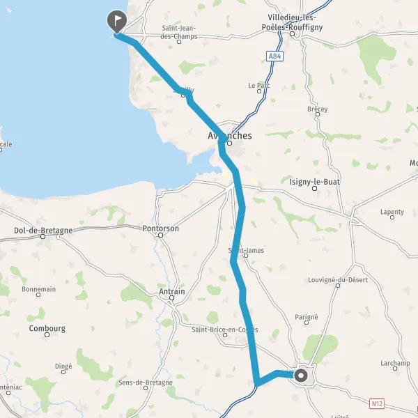 Prendre à droite et rejoindre A84. Continuer sur 41 kilomètres