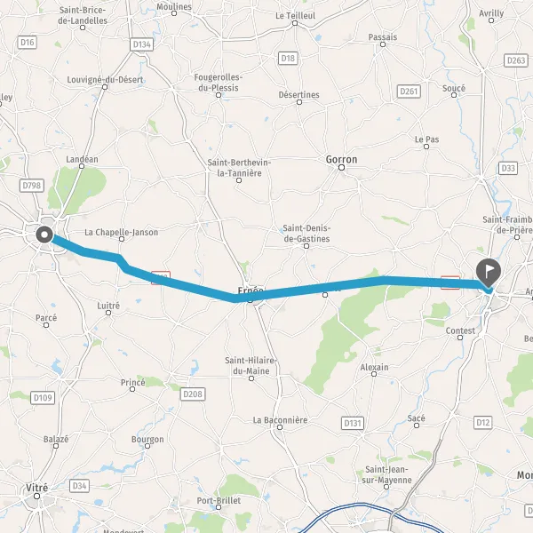 Au rond-point, prendre la 2ème sortie sur N12 (Rue de Bretagne) et continuer sur 19 kilomètres