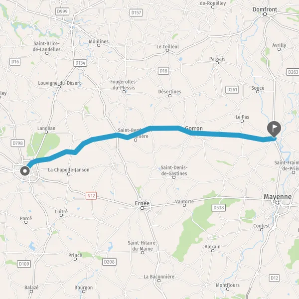 Au rond-point, prendre la 1ère sortie sur D806 (Route de Gorron) et continuer sur 850 mètres