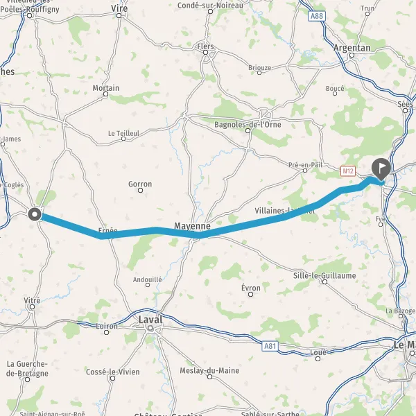 Au rond-point, prendre la 2ème sortie sur D112 (Rue d'Alençon) et continuer sur 1,4 kilomètre