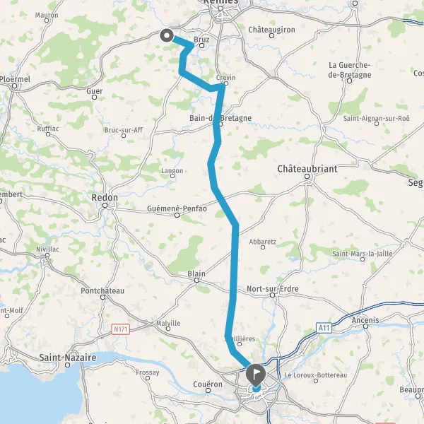 Tourner à droite sur D36 (Rue de Bruz) et continuer sur 210 mètres