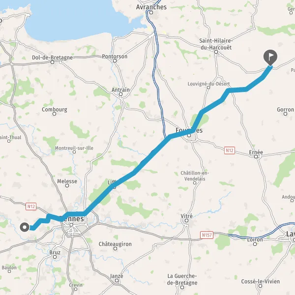 Au rond-point, prendre la 3ème sortie sur D3125 (Rue de Rennes) et continuer sur 170 mètres