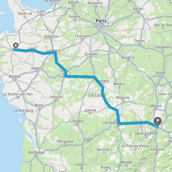 Prendre à droite et rejoindre A85 E604. Continuer sur 106 kilomètres
