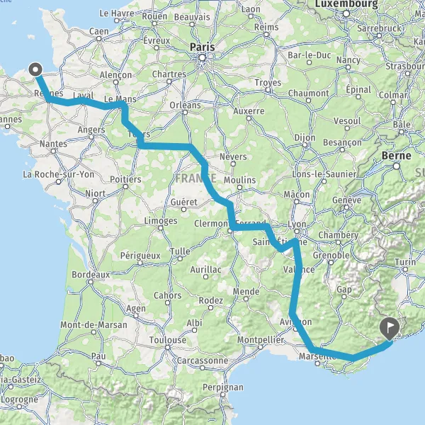 Prendre à droite et rejoindre A85 E604. Continuer sur 106 kilomètres
