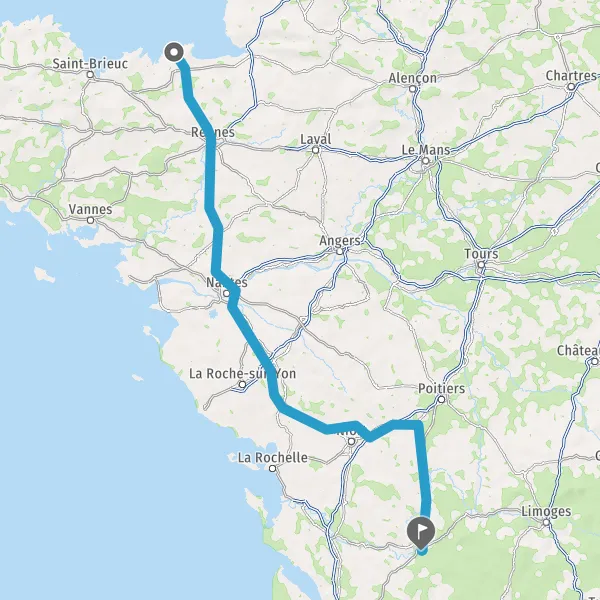 Prendre à droite et rejoindre A83. Continuer sur 150 kilomètres
