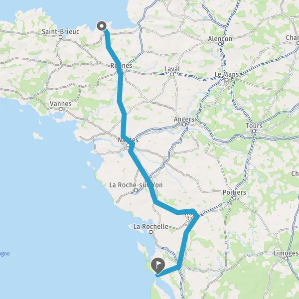 Prendre à droite et rejoindre A83. Continuer sur 150 kilomètres