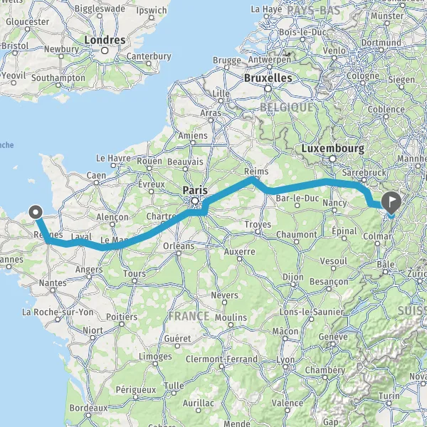Au rond-point, prendre la 3ème sortie sur D137 (Rue du Général Patton) et continuer sur 60 kilomètres