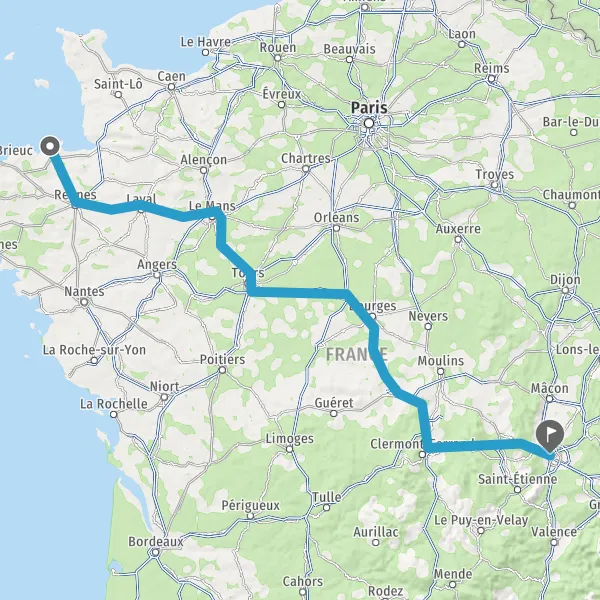 Prendre à droite et rejoindre A85 E604. Continuer sur 106 kilomètres