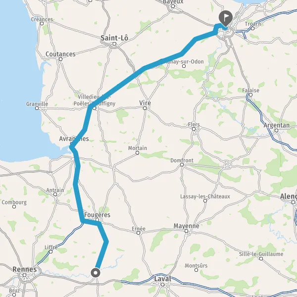 Prendre à droite et rejoindre A84. Continuer sur 134 kilomètres