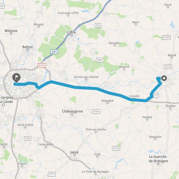 Tourner légèrement à droite sur D857 (Rue de Vitré) et continuer sur 500 mètres