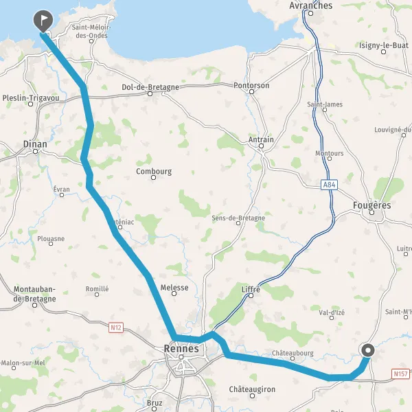 Au rond-point, prendre la 2ème sortie sur D777 (Route de Janzé) et continuer sur 1,7 kilomètre