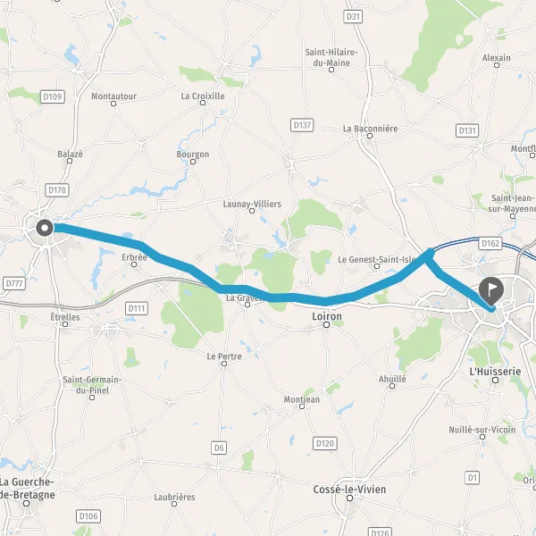 Au rond-point, prendre la 1ère sortie sur D857 (Boulevard de Laval) et continuer sur 1,7 kilomètre